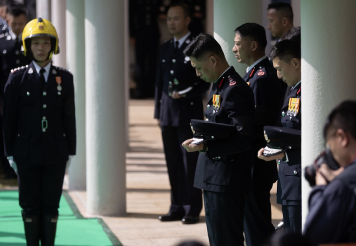 香港消防处处长于12月19日向在大火中殉职的消防员何伟豪致敬。